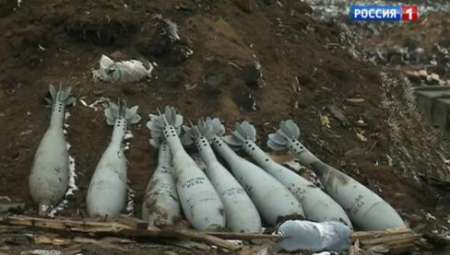 Снаряды от артиллерийских установок, гаубиц и танков, мины, ящики с вооружением грузят на ЗиЛы, с которых еще не успели стереть белые полосы — опознавательные знаки украинской армии. Среди вооружения ополченцы обнаружили несколько 155-миллиметровых гаубиц натовского производства и боекомплекты к ним. В советской армии и вооруженных силах Украины орудия с таким калибром не использовались.